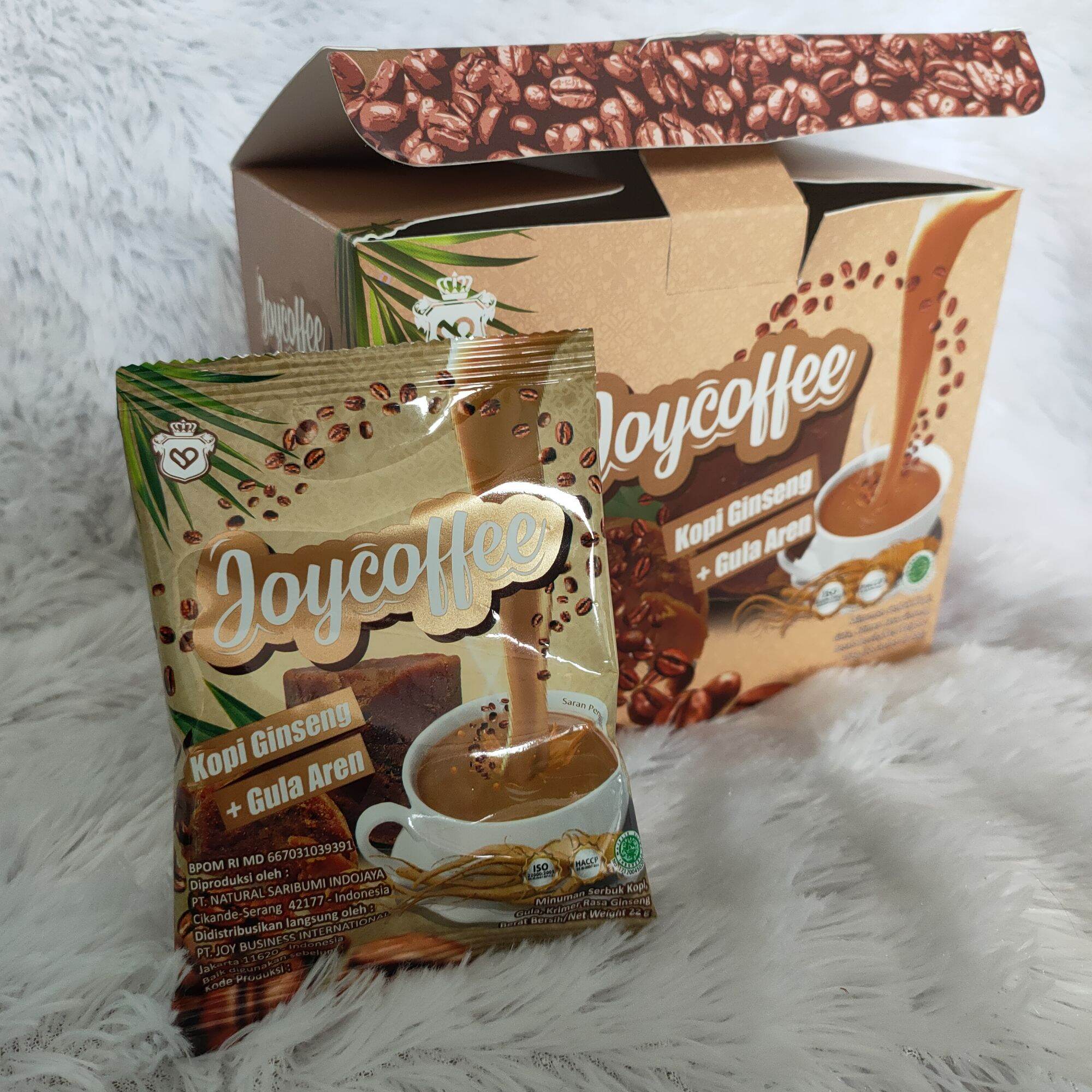 Joycoffee adalah minuman serbuk kopi, ginseng dan gula aren yang berbahan dasar 100 % alami sehingga baik dikonsumsi untuk kesehatan. 1 box Joycoffee berisi 12 sachet